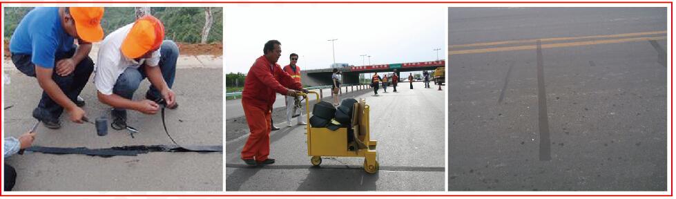 1、根據(jù)路面裂(接)縫的寬度選擇所用貼縫帶的規(guī)格,通常有8cm、5cm、3cm三種。